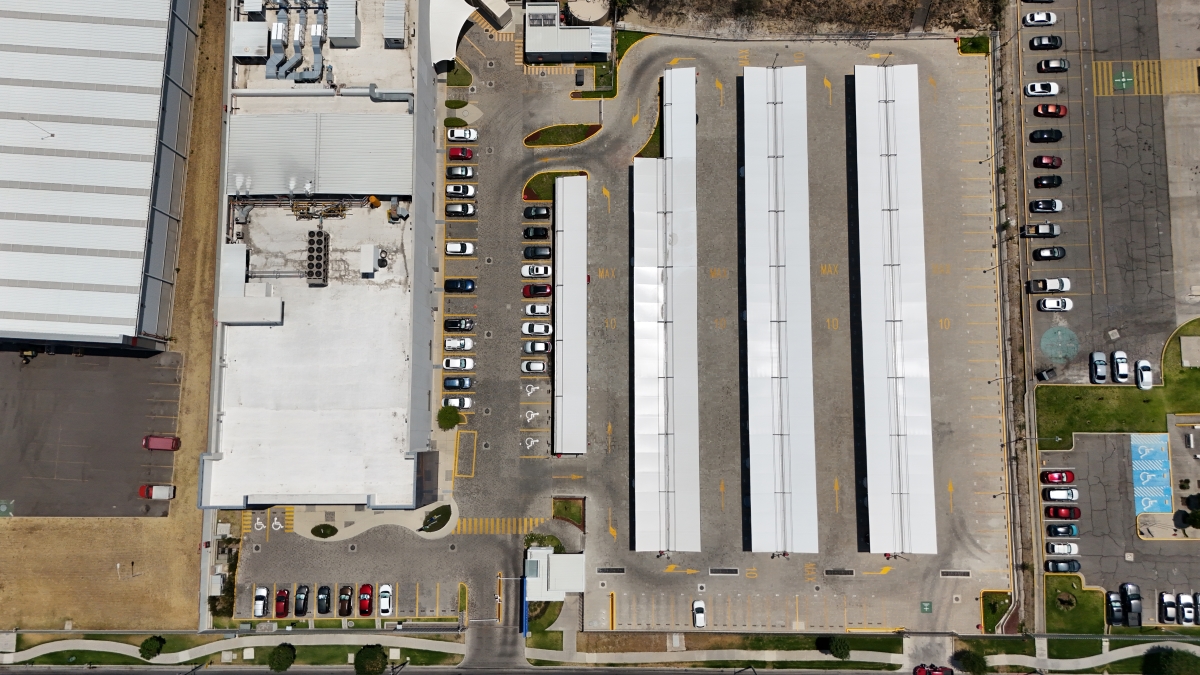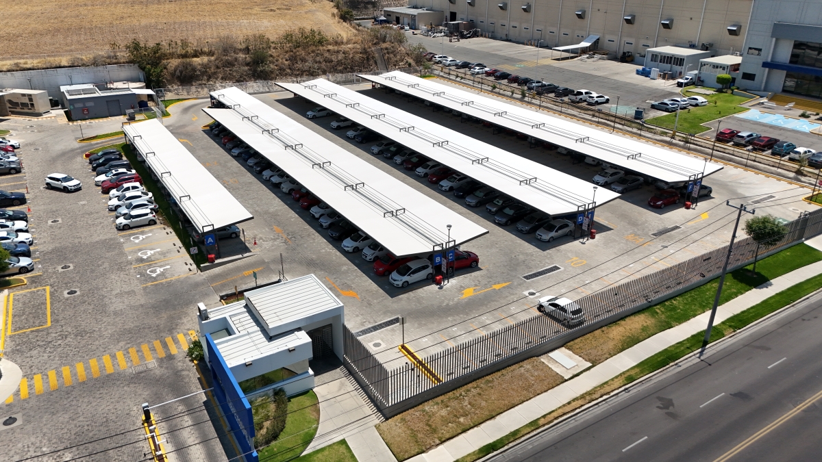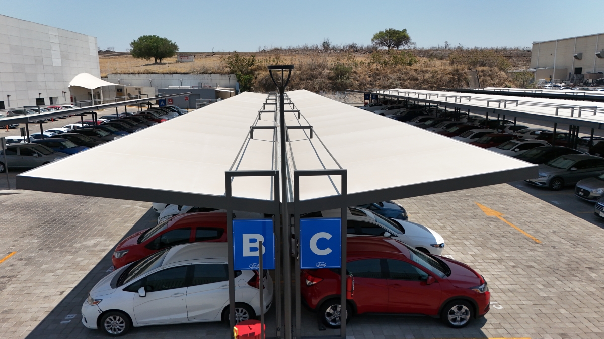 For this project, the need to design and build a fully functional and equipped parking lot was raised, on a vacant lot that was previously used for temporary parking; In this area, a roofing module design was projected with white waterproof canvas and a gray metal structure that contrasted with the light tones of the roof.